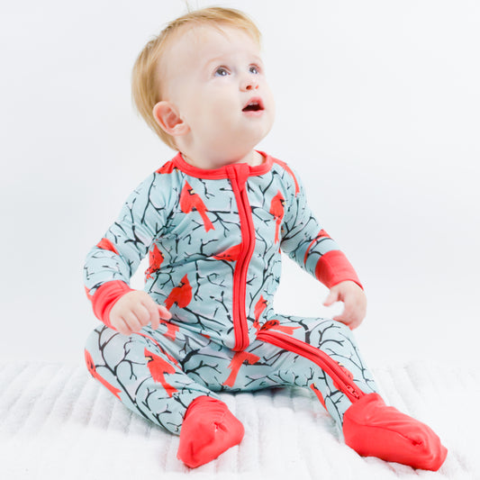 Convertible Zipper Romper - Winter Cardinals