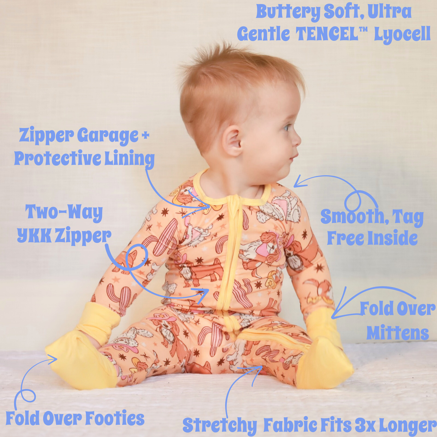 Scared of pinching skin? These features are here to help! The zipper garage makes sure you can zip all the way to the top while still keeping the zipper away from skin. The underlay ensures only our buttery soft, TENCEL™ Lyocell fabric touches their delicate skin. This allows for a sensory friendly experience as well!