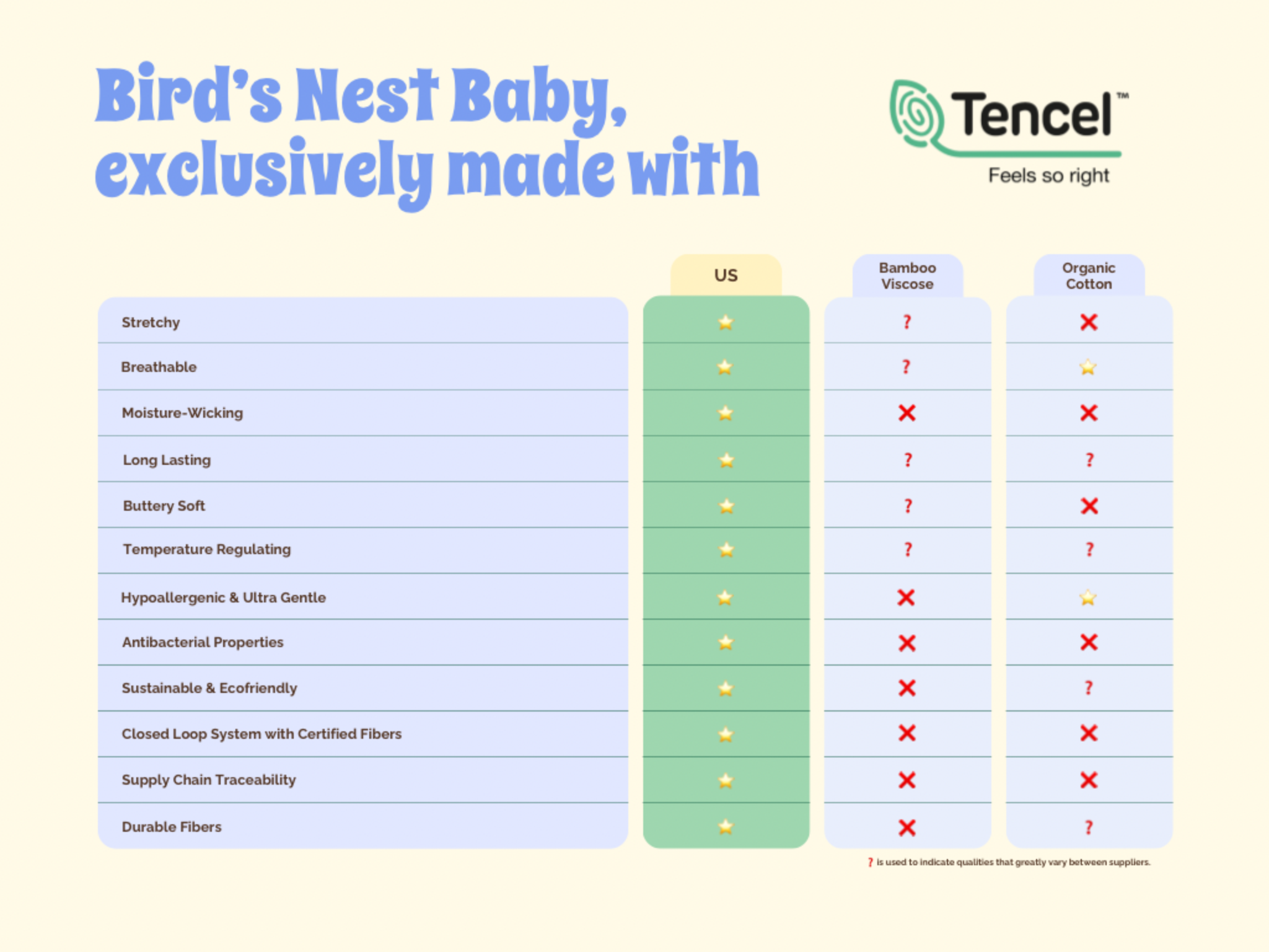 At Bird's Nest Baby, we want you to have the knowledge to make informed decisions, not just fluffy marketing. Lots of "bamboo" brands rely on marketing tactics to greenwash & upsell their product. In reality, the production of viscose from bamboo uses toxic chemicals that are released into the environment, harming the planet and the people who make the material.