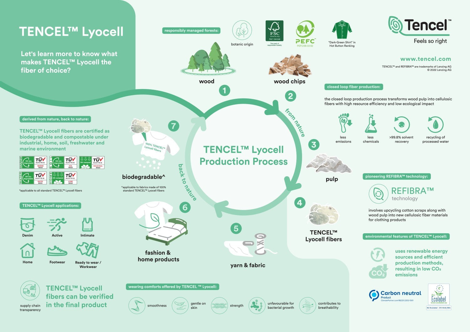 Our custom milled TENCEL™ Lyocell fabric is made from sustainably sourced FSC/PEFC certified wood. 99.8% of solvent used in fiber production is recovered, meaning it does not pollute the environment. Fibers have been awarded the EU Ecolabel, which tackles the main environmental impacts of products along their full lifecycle, from extraction of raw material to disposal.