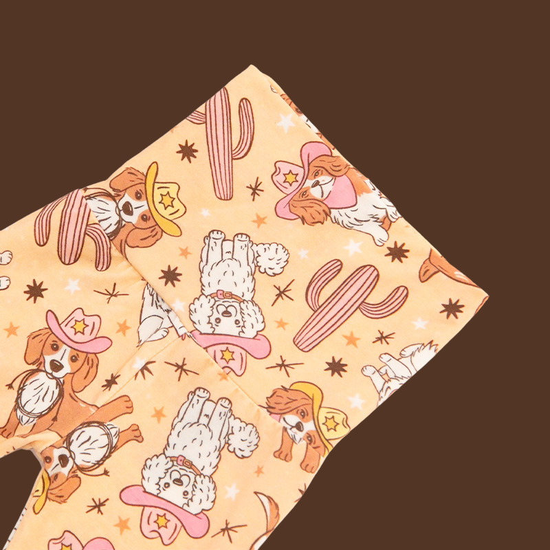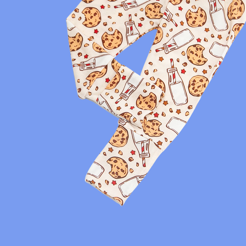 Have you ever worn leggings with an elastic band at the top? It's the worst, most uncomfortable thing. If I'm going to be lounging, sleeping or literally anything, I want to be COMFORTABLE. Same goes for littles. The waist does not have a harsh elastic band, instead, it is a doubled section of fabric that can be folded down! This allows for a flexible fit on soft, growing bellies and ultimate comfort.